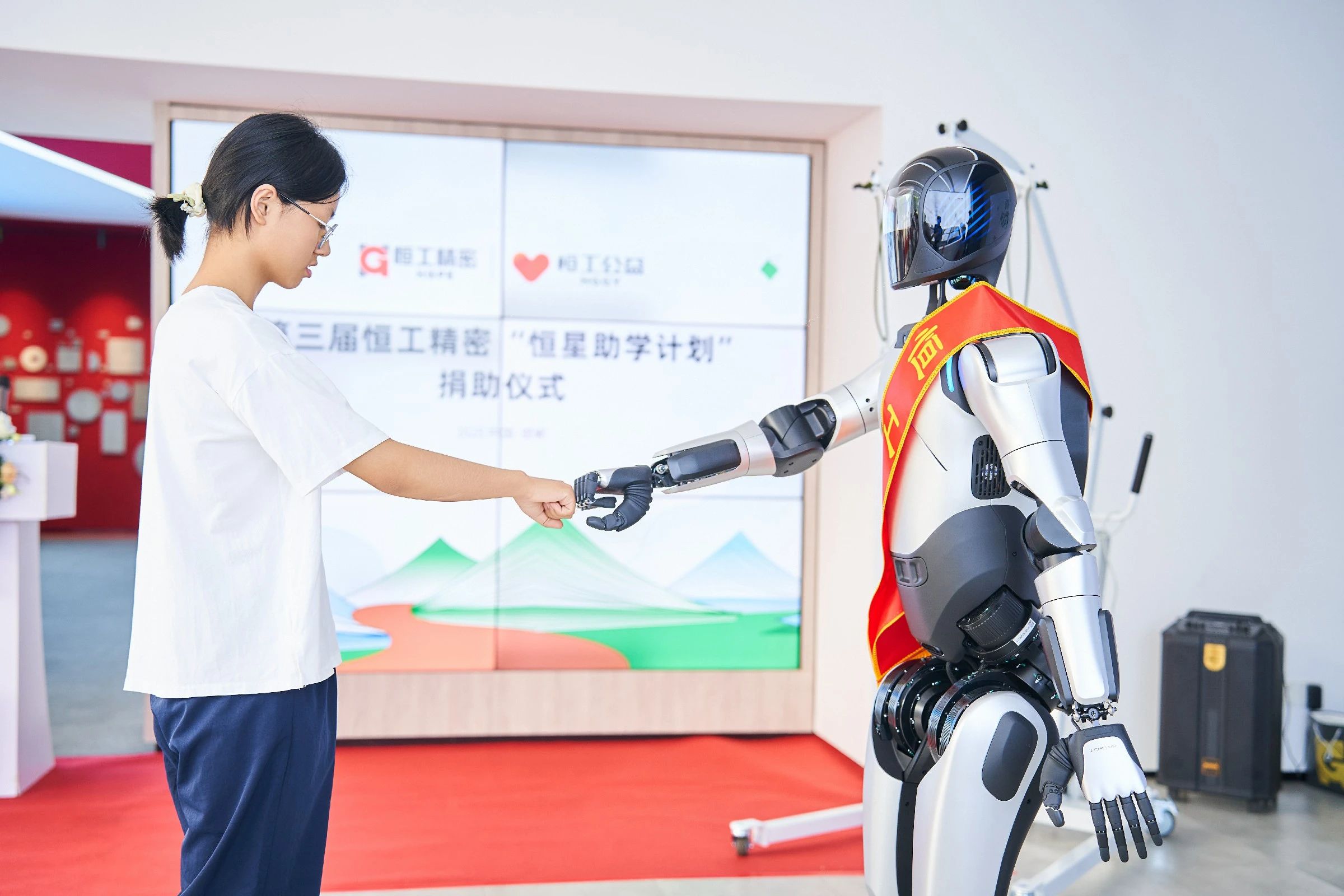 活動現(xiàn)場氣氛熱烈,儀式結(jié)束后,學子們走進企業(yè)智能化展廳,近距離觀察工業(yè)前沿領域核心零部件產(chǎn)品,與機器人進行近距離“人機互動”。恒工精密人形機器人在展示區(qū)靈活運轉(zhuǎn),其精準的機械臂操作與AI交互系統(tǒng)令同學們驚嘆不已,切身感受到科技發(fā)展的澎湃力量。通過了解恒工精密打破國外技術壁壘,實現(xiàn)國產(chǎn)超越的奮斗歷程,同學們感受到中國制造業(yè)者在逆境中"千錘百煉終成器"的堅韌品格,表示進入大學后會努力精進學業(yè),為我國邁向制造強國的事業(yè)做出自己的貢獻。